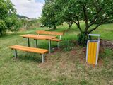 Der Abfallbehälter besteht aus Fichtenholz. Die Oberflächenbehandlung besteht in Tiefenimprägnierung und 3-Schichten Lackbehandlung, die die Anforderungen der Norm EN 71/3 erfüllen (Sicherheit von Spielzeug). Diese Konstruktion wird im Beton verankert. Der Mülleimer Einsatz besteht aus verzinktem Stahl. Die gesamten Metallelemente sind auch verzinkt oder die Duplexbeschichtung mit Pulvereinbrennfarbe nach der RAL geschützt. Sämtliche Verbindungselemente sind verzinkt oder aus Edelstahl.