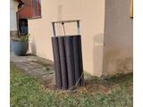 Der Abfallbehälter besteht aus recyceltem Kunststoff. Diese Konstruktion wird im Beton verankert. Der Mülleimer Einsatz besteht aus verzinktem Stahl. Die gesamten Metallelemente sind auch verzinkt oder die Duplexbeschichtung mit Pulvereinbrennfarbe nach der RAL geschützt. Sämtliche Verbindungselemente sind verzinkt oder aus Edelstahl.