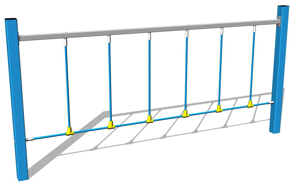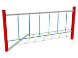 Die Seile bestehen aus HERKULESTAU (16 mm Seil aus Polypropylen mit Stahlkern) und sind mit Kunststoffgelenken verbunden. Alle Verbindungselemente sind verzinkt oder aus Edelstahl.