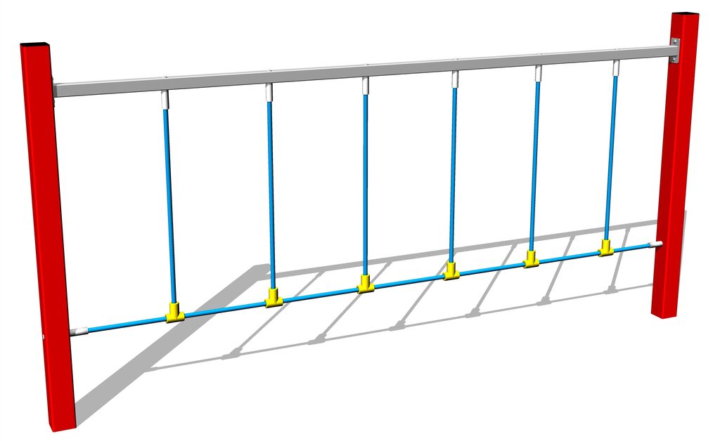 Die Seile bestehen aus HERKULESTAU (16 mm Seil aus Polypropylen mit Stahlkern) und sind mit Kunststoffgelenken verbunden. Alle Verbindungselemente sind verzinkt oder aus Edelstahl.