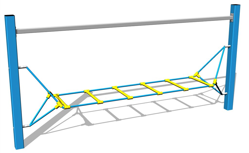 Die Seile bestehen aus HERKULESTAU (16 mm Seil aus Polypropylen mit Stahlkern) und sind mit Kunststoffgelenken verbunden. Alle Verbindungselemente sind verzinkt oder aus Edelstahl.