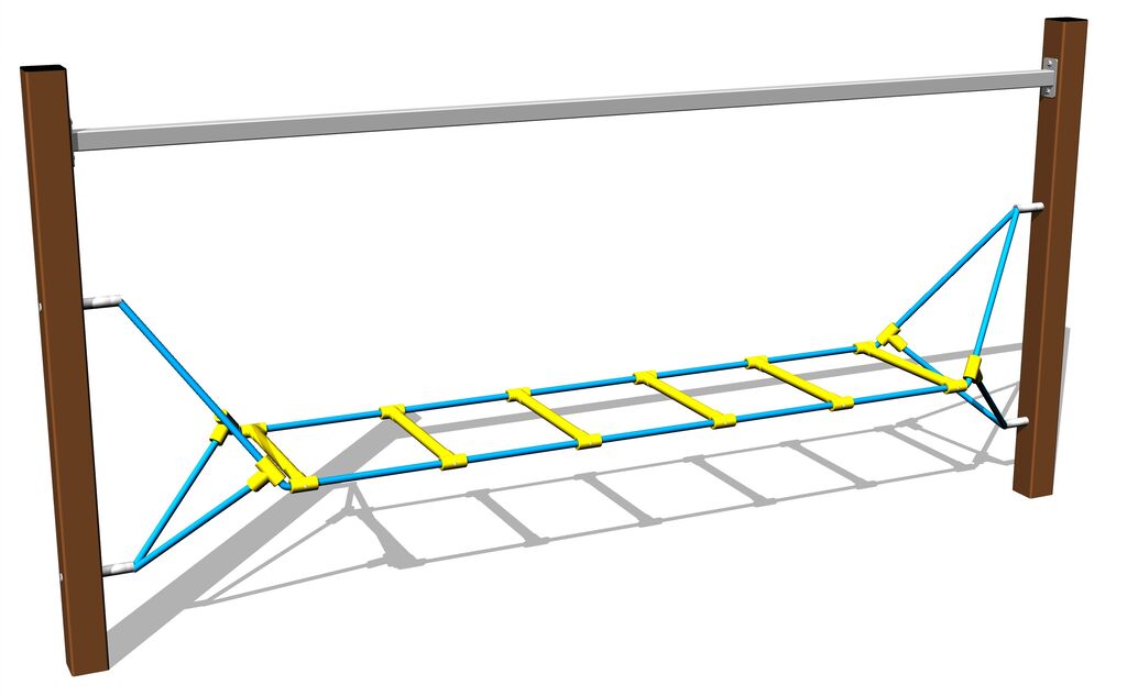 Die Seile bestehen aus HERKULESTAU (16 mm Seil aus Polypropylen mit Stahlkern) und sind mit Kunststoffgelenken verbunden. Alle Verbindungselemente sind verzinkt oder aus Edelstahl.