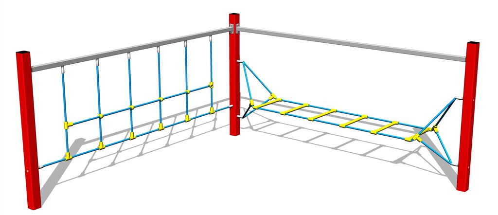 Die Seile bestehen aus HERKULESTAU (16 mm Seil aus Polypropylen mit Stahlkern) und sind mit Kunststoffgelenken verbunden. Alle Verbindungselemente sind verzinkt oder aus Edelstahl.