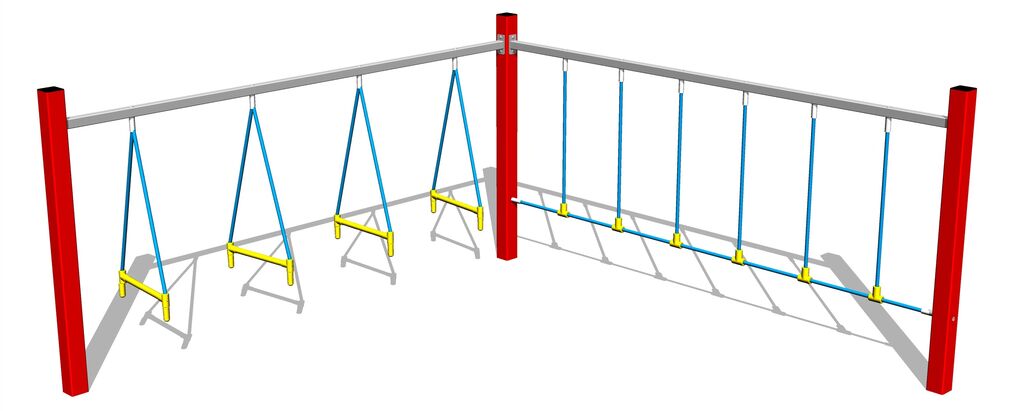 Affenspur - metall, Fallhöhe 1 m, Als Fallschutzfläche genügt eine Grasfläche. Zur Auswahl stehen vier Farbvarianten der Konstruktion – Braun, Blau, Rot und Kalk. Mehr Informationen