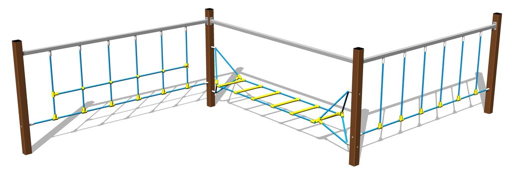 Die Seile bestehen aus HERKULESTAU (16 mm Seil aus Polypropylen mit Stahlkern) und sind mit Kunststoffgelenken verbunden. Alle Verbindungselemente sind verzinkt oder aus Edelstahl.
