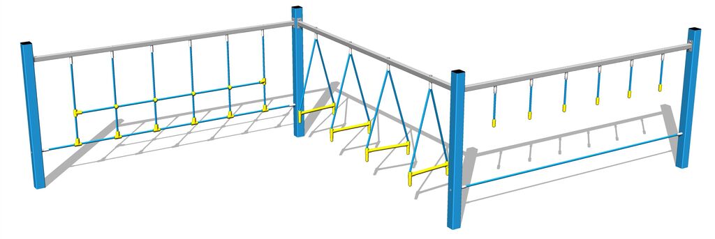 Die Seile bestehen aus HERKULESTAU (16 mm Seil aus Polypropylen mit Stahlkern) und sind mit Kunststoffgelenken verbunden. Alle Verbindungselemente sind verzinkt oder aus Edelstahl.