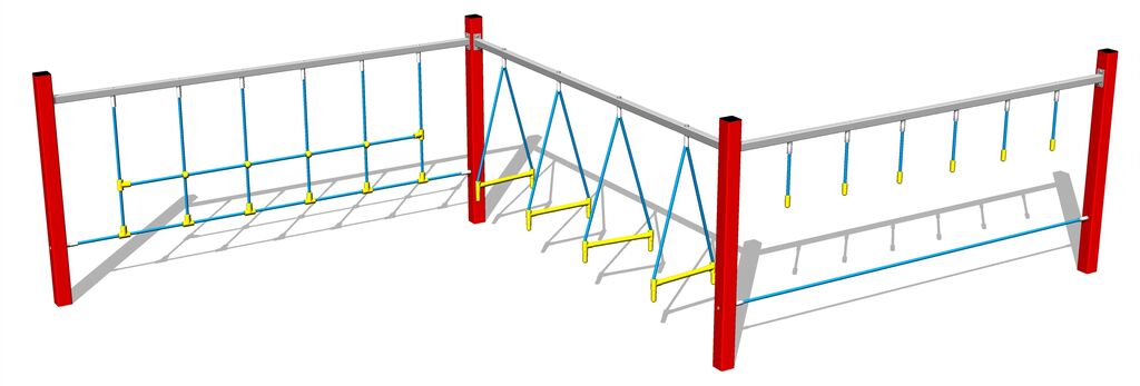 Die Seile bestehen aus HERKULESTAU (16 mm Seil aus Polypropylen mit Stahlkern) und sind mit Kunststoffgelenken verbunden. Alle Verbindungselemente sind verzinkt oder aus Edelstahl.