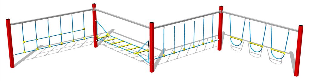 Die Seile bestehen aus HERKULESTAU (16 mm Seil aus Polypropylen mit Stahlkern) und sind mit Kunststoffgelenken verbunden. Alle Verbindungselemente sind verzinkt oder aus Edelstahl.