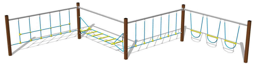 Die Seile bestehen aus HERKULESTAU (16 mm Seil aus Polypropylen mit Stahlkern) und sind mit Kunststoffgelenken verbunden. Alle Verbindungselemente sind verzinkt oder aus Edelstahl.