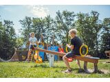 Die Haltegriffe bestehen aus verzinktem Stahl oder die Duplexbeschichtung mit Pulvereinbrennfarbe nach der RAL geschützt. Die Wippe ist bezogen auf hohe Belastung und die Langlebigkeit konstruiert. Die Stoßdämpfung ist durch Wippendämpfer aus Gummi gewährleistet. Das gesamte Verbindungsmaterial ist verzinkt oder aus Edelstahl.