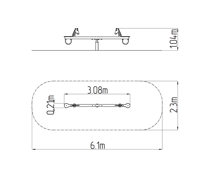 Die Wippe ist bezogen auf hohe Belastung und die Langlebigkeit konstruiert. Die Stoßdämpfung ist durch Wippendämpfer aus Gummi gewährleistet. Das gesamte Verbindungsmaterial ist verzinkt oder aus Edelstahl.