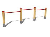 Die Tragkonstruktion der Dreifachreckstange besteht aus Leimbalken. Dies bietet maximalen Schutz gegen Rissbildung im Holz. Die Oberflächenbehandlung besteht in Tiefenimprägnierung und 3-Schichten Lackbehandlung, die die Anforderungen der Norm EN 71/3 erfüllen (Sicherheit von Spielzeug). Diese Konstruktionen werden im Terrain durch feuerverzinkte Stahlpfostenträger verankert, durch Schrauben mit dem Spielelement verbunden und anschließend im Beton befestigt. Somit wird der direkte Kontakt mit dem Boden vermieden. Die gesamten Metallelemente sind auch verzinkt oder die Duplexbeschichtung mit Pulvereinbrennfarbe nach der RAL geschützt. Alle Verbindungselemente sind verzinkt oder aus Edelstahl.