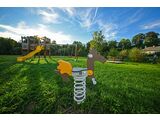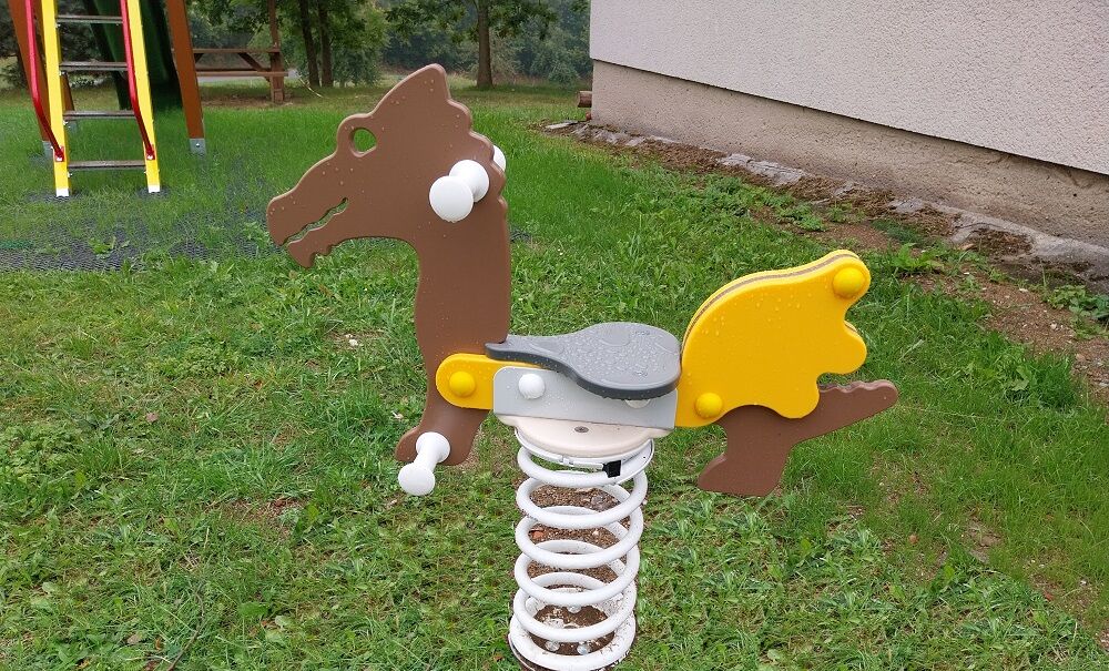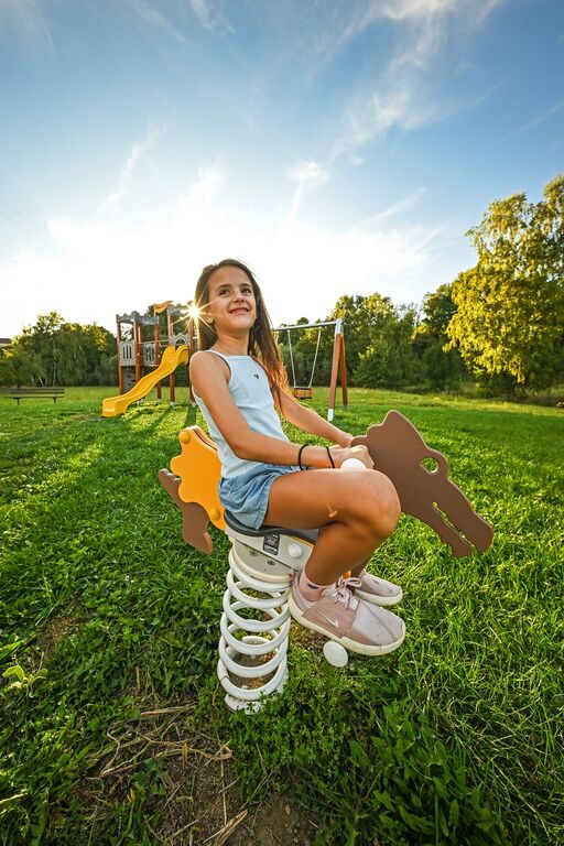 Der Körper der Wippe und der Sitz bestehen aus hochwertigem HDPE Kunststoff (er zeichnet sich durch seine Farbbeständigkeit und UV-Beständigkeit aus, aber vor allem durch seine Sicherheit, weil er bruchfest ist und somit keine Verletzungsgefahr droht). Die Feder besteht aus Spezialfederdraht und die Duplexbeschichtung mit Pulvereinbrennfarbe nach der RAL geschützt. Alle Verbindungselemente sind verzinkt oder aus Edelstahl.