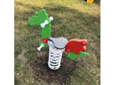 Der Körper der Wippe und der Sitz bestehen aus hochwertigem HDPE Kunststoff (er zeichnet sich durch seine Farbbeständigkeit und UV-Beständigkeit aus, aber vor allem durch seine Sicherheit, weil er bruchfest ist und somit keine Verletzungsgefahr droht). Die Feder besteht aus Spezialfederdraht und die Duplexbeschichtung mit Pulvereinbrennfarbe nach der RAL geschützt. Alle Verbindungselemente sind verzinkt oder aus Edelstahl.