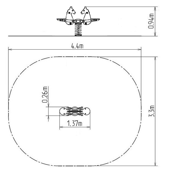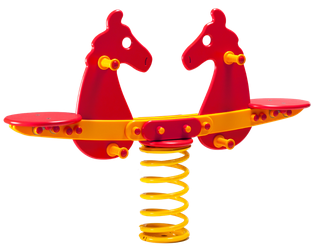 Der Körper der Wippe und der Sitz bestehen aus hochwertigem HDPE Kunststoff (er zeichnet sich durch seine Farbbeständigkeit und UV-Beständigkeit aus, aber vor allem durch seine Sicherheit, weil er bruchfest ist und somit keine Verletzungsgefahr droht). Die Feder besteht aus Spezialfederdraht und die Duplexbeschichtung mit Pulvereinbrennfarbe nach der RAL geschützt. Alle Verbindungselemente sind verzinkt oder aus Edelstahl.