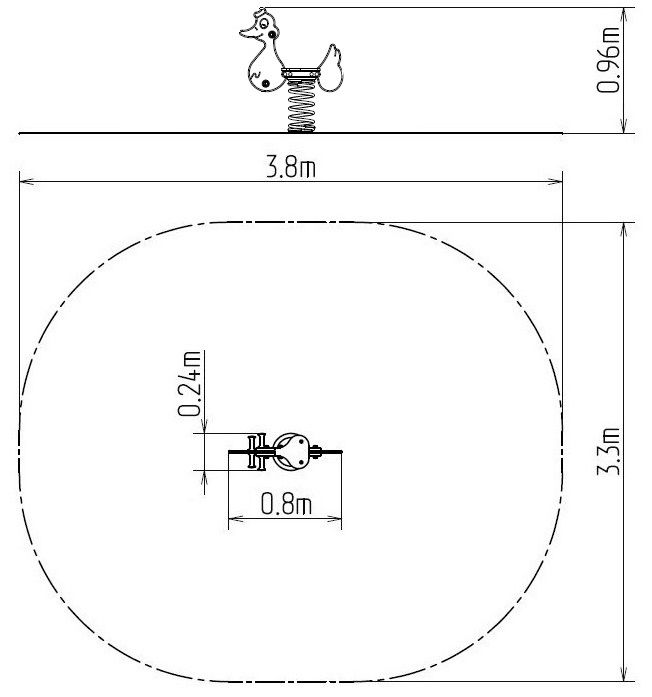 Der Körper der Wippe und der Sitz bestehen aus hochwertigem HDPE Kunststoff (er zeichnet sich durch seine Farbbeständigkeit und UV-Beständigkeit aus, aber vor allem durch seine Sicherheit, weil er bruchfest ist und somit keine Verletzungsgefahr droht). Die Feder besteht aus Spezialfederdraht und die Duplexbeschichtung mit Pulvereinbrennfarbe nach der RAL geschützt. Alle Verbindungselemente sind verzinkt oder aus Edelstahl.