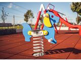 Der Körper der Wippe und der Sitz bestehen aus hochwertigem HDPE Kunststoff (er zeichnet sich durch seine Farbbeständigkeit und UV-Beständigkeit aus, aber vor allem durch seine Sicherheit, weil er bruchfest ist und somit keine Verletzungsgefahr droht). Die Feder besteht aus Spezialfederdraht und die Duplexbeschichtung mit Pulvereinbrennfarbe nach der RAL geschützt. Alle Verbindungselemente sind verzinkt oder aus Edelstahl.