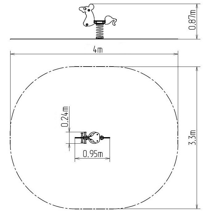 Der Körper der Wippe und der Sitz bestehen aus hochwertigem HDPE Kunststoff (er zeichnet sich durch seine Farbbeständigkeit und UV-Beständigkeit aus, aber vor allem durch seine Sicherheit, weil er bruchfest ist und somit keine Verletzungsgefahr droht). Die Feder besteht aus Spezialfederdraht und die Duplexbeschichtung mit Pulvereinbrennfarbe nach der RAL geschützt. Alle Verbindungselemente sind verzinkt oder aus Edelstahl.