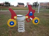 Der Körper der Wippe und der Sitz bestehen aus hochwertigem HDPE Kunststoff (er zeichnet sich durch seine Farbbeständigkeit und UV-Beständigkeit aus, aber vor allem durch seine Sicherheit, weil er bruchfest ist und somit keine Verletzungsgefahr droht). Die Feder besteht aus Spezialfederdraht und die Duplexbeschichtung mit Pulvereinbrennfarbe nach der RAL geschützt. Alle Verbindungselemente sind verzinkt oder aus Edelstahl.