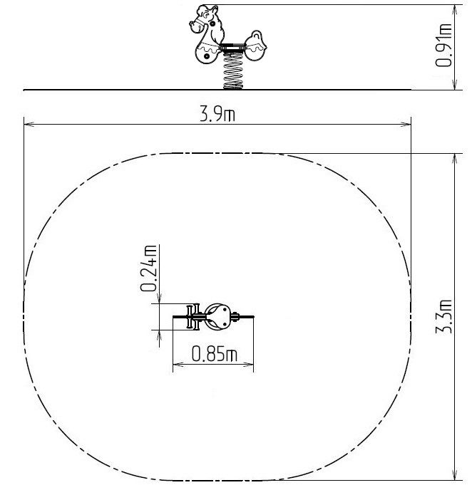 Der Körper der Wippe und der Sitz bestehen aus hochwertigem HDPE Kunststoff (er zeichnet sich durch seine Farbbeständigkeit und UV-Beständigkeit aus, aber vor allem durch seine Sicherheit, weil er bruchfest ist und somit keine Verletzungsgefahr droht). Die Feder besteht aus Spezialfederdraht und die Duplexbeschichtung mit Pulvereinbrennfarbe nach der RAL geschützt. Alle Verbindungselemente sind verzinkt oder aus Edelstahl.