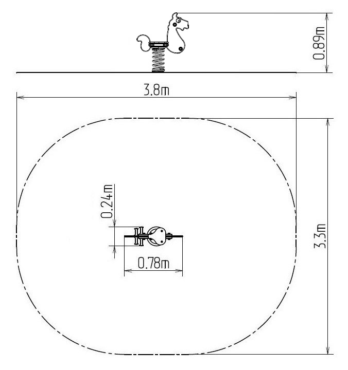 Der Körper der Wippe und der Sitz bestehen aus hochwertigem HDPE Kunststoff (er zeichnet sich durch seine Farbbeständigkeit und UV-Beständigkeit aus, aber vor allem durch seine Sicherheit, weil er bruchfest ist und somit keine Verletzungsgefahr droht). Die Feder besteht aus Spezialfederdraht und die Duplexbeschichtung mit Pulvereinbrennfarbe nach der RAL geschützt. Alle Verbindungselemente sind verzinkt oder aus Edelstahl.