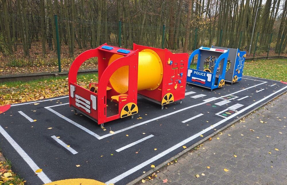 Die tragende Struktur des Feuerwehrautos besteht aus Baustahl, der durch die Zinkbeschichtung vor Korrosion geschützt ist. Dies verlängert die Lebensdauer des Spielelements oder die Duplexbeschichtung mit Pulvereinbrennfarbe nach der RAL geschützt. Diese Strukturen sind in ein Betonbett eingebettet. Die gesamten Metallelemente sind auch verzinkt oder die Duplexbeschichtung mit Pulvereinbrennfarbe nach der RAL geschützt.