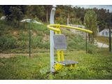 Der Sitz und die Rückenlehne bestehen aus aluminium, der mit einem HDPE beschichtet ist (Hochdruck-, vollfarbiges Polyethylen, das sich durch hohe Farbstabilität, UV-Beständigkeit auszeichnet). Die Griffe bestehen aus pulverbeschichteten Stahlrohren. Die Tragsäule besteht aus einem Stahlrohr mit einem Befestigungsflansch am Boden. Sitzrahmen und Lauffläche bestehen aus pulverbeschichtetem Blech. Wälzlager werden für bewegliche Verbindungen eingesetzt. Die Löcher sind an den Enden mit Stahlelementen verschlossen. Alle Befestigungen sind rostfrei.
