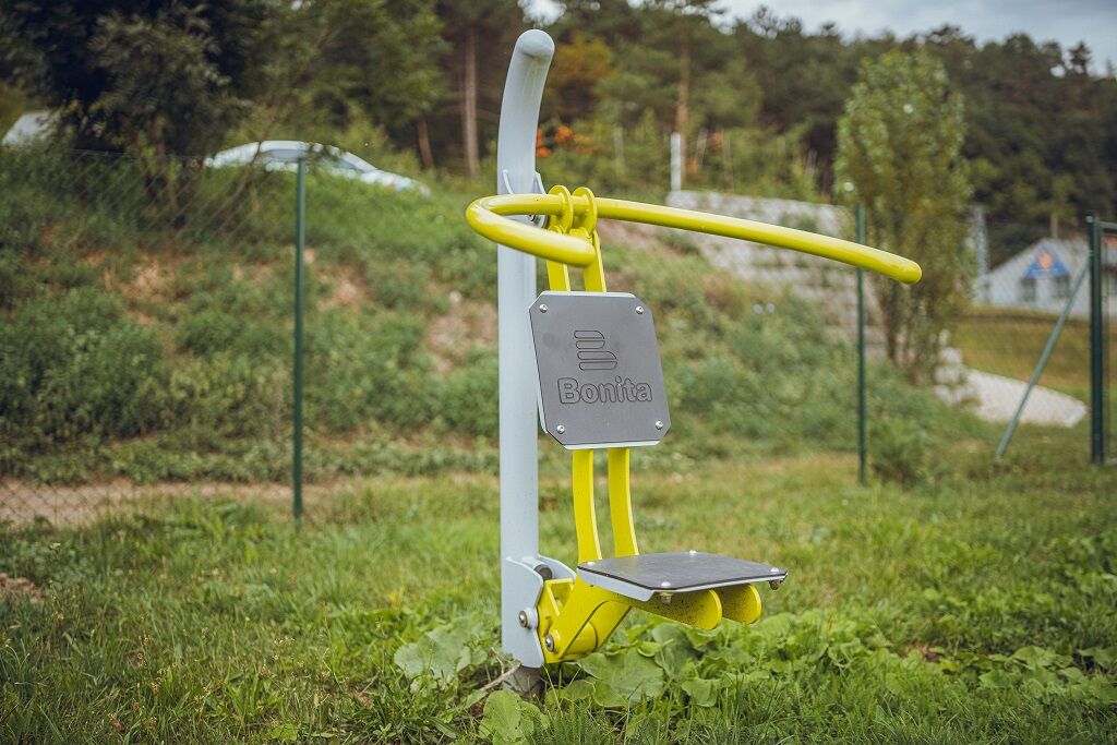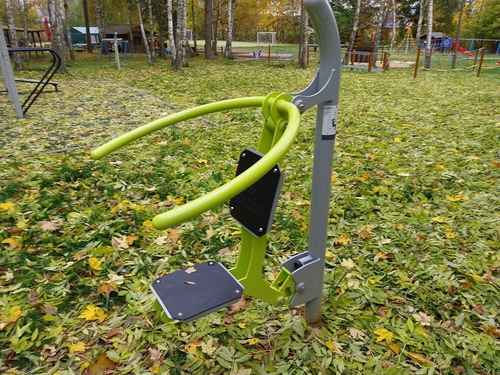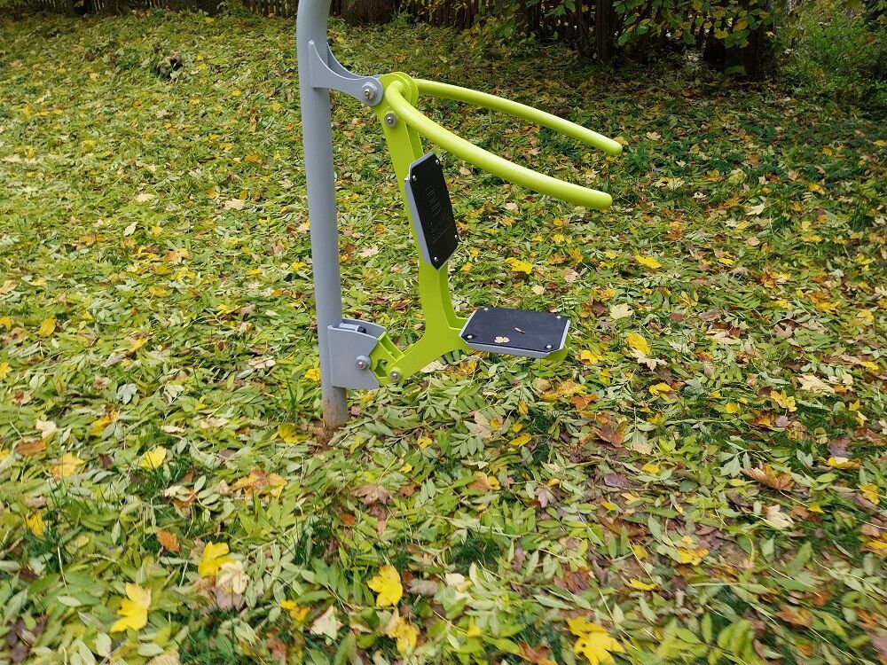 Der Sitz und die Rückenlehne bestehen aus aluminium, der mit einem HDPE beschichtet ist (Hochdruck-, vollfarbiges Polyethylen, das sich durch hohe Farbstabilität, UV-Beständigkeit auszeichnet). Die Griffe bestehen aus pulverbeschichteten Stahlrohren. Die Tragsäule besteht aus einem Stahlrohr mit einem Befestigungsflansch am Boden. Sitzrahmen und Lauffläche bestehen aus pulverbeschichtetem Blech. Wälzlager werden für bewegliche Verbindungen eingesetzt. Die Löcher sind an den Enden mit Stahlelementen verschlossen. Alle Befestigungen sind rostfrei.