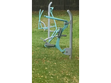 Der Sitz und die Rückenlehne bestehen aus aluminium, der mit einem HDPE beschichtet ist (Hochdruck-, vollfarbiges Polyethylen, das sich durch hohe Farbstabilität, UV-Beständigkeit auszeichnet). Die Griffe bestehen aus pulverbeschichteten Stahlrohren. Die Tragsäule besteht aus einem Stahlrohr mit einem Befestigungsflansch am Boden. Sitzrahmen und Lauffläche bestehen aus pulverbeschichtetem Blech. Wälzlager werden für bewegliche Verbindungen eingesetzt. Die Löcher sind an den Enden mit Stahlelementen verschlossen. Alle Befestigungen sind rostfrei.