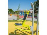 Der Sitz und die Rückenlehne bestehen aus aluminium, der mit einem HDPE beschichtet ist (Hochdruck-, vollfarbiges Polyethylen, das sich durch hohe Farbstabilität, UV-Beständigkeit auszeichnet). Die Griffe bestehen aus pulverbeschichteten Stahlrohren. Die Tragsäule besteht aus einem Stahlrohr mit einem Befestigungsflansch am Boden. Sitzrahmen und Lauffläche bestehen aus pulverbeschichtetem Blech. Wälzlager werden für bewegliche Verbindungen eingesetzt. Die Löcher sind an den Enden mit Stahlelementen verschlossen. Alle Befestigungen sind rostfrei.