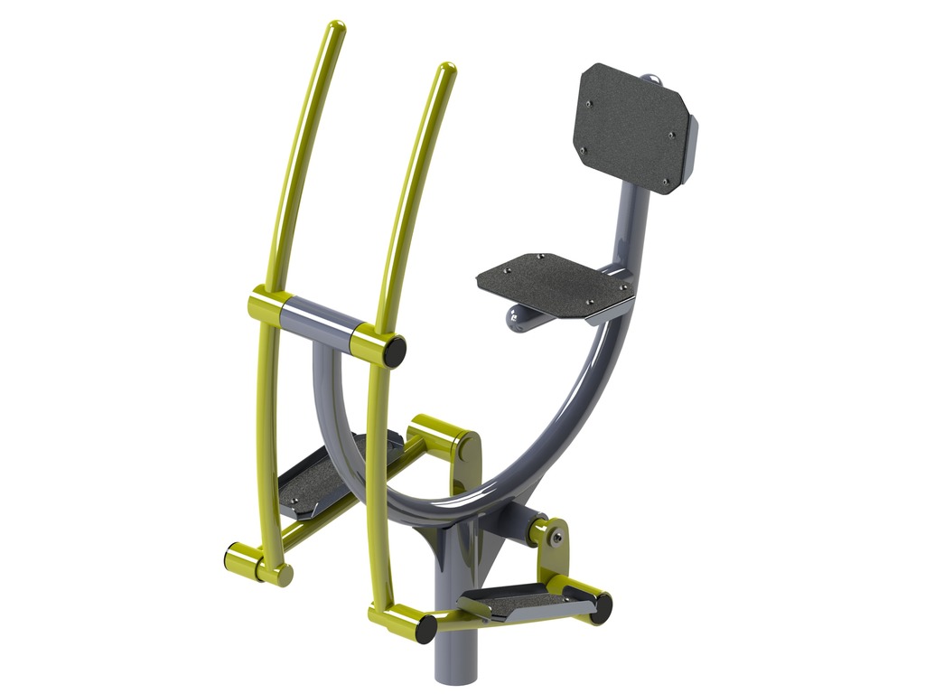 Der Sitz und die Rückenlehne bestehen aus aluminium, der mit einem HDPE beschichtet ist (Hochdruck-, vollfarbiges Polyethylen, das sich durch hohe Farbstabilität, UV-Beständigkeit auszeichnet). Die Griffe bestehen aus pulverbeschichteten Stahlrohren. Die Tragsäule besteht aus einem Stahlrohr mit einem Befestigungsflansch am Boden. Sitzrahmen und Lauffläche bestehen aus pulverbeschichtetem Blech. Wälzlager werden für bewegliche Verbindungen eingesetzt. Die Löcher sind an den Enden mit Stahlelementen verschlossen. Alle Befestigungen sind rostfrei.