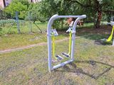 Die Griffe bestehen aus pulverbeschichteten Stahlrohren. Die Tragsäule besteht aus einem Stahlrohr mit einem Befestigungsflansch am Boden. Der Rahmen und die Lauffläche bestehen aus pulverbeschichtetem Blech. Wälzlager werden für bewegliche Verbindungen eingesetzt. Die Löcher sind an den Enden mit Stahlelementen verschlossen. Alle Befestigungen sind rostfrei.