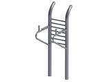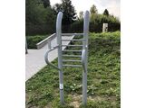 Anweisungen: Stellen Sie sich mit beiden Beinen auf die Standfläche mit dem Rücken zu den Sprossen gerichtet. Stützen Sie Ihre Unterarme auf die Schienen und halten Sie die Griffe mit Ihren Händen. Ziehen Sie Ihre Beine mit gebeugten Knien so hoch wie möglich nach oben.