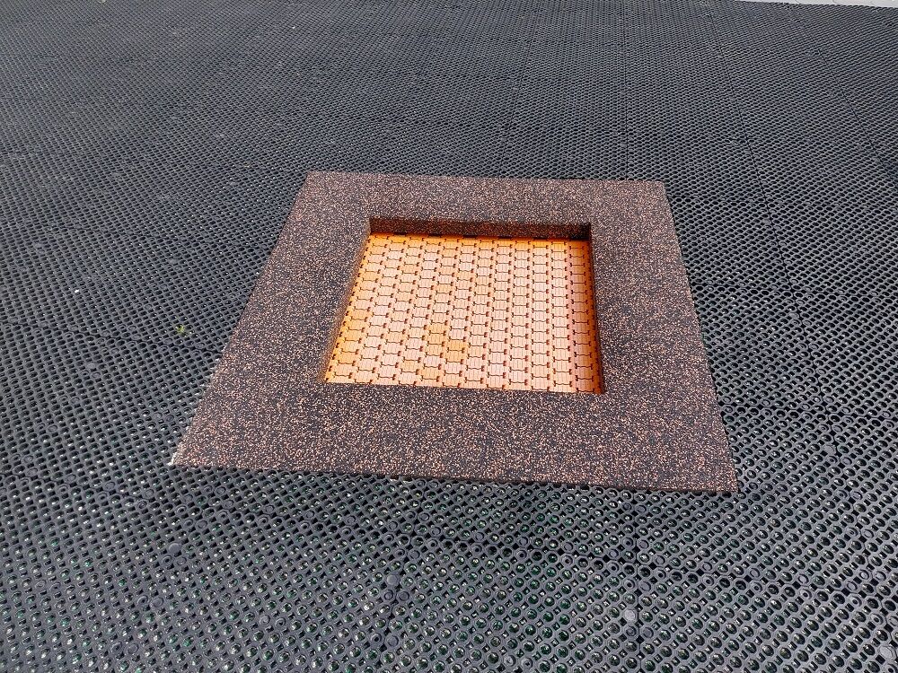 Die Dämpfungsoberfläche - ist aus speziellem recyceltem Gummi mit dem EPDM-Zusatz hergestellt. Die Dämpfungsoberfläche ist in einer Antirutsch-Ausführung und dient zur Dämpfung potenzieller Stürze