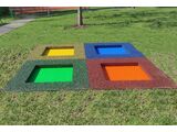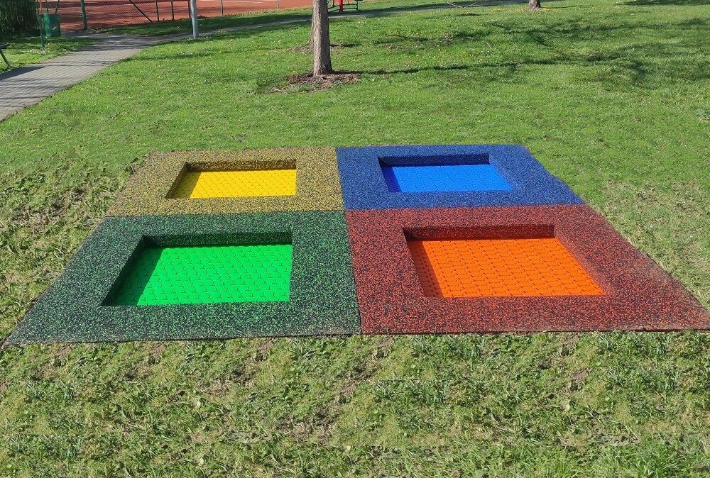 Die Dämpfungsoberfläche - ist aus speziellem recyceltem Gummi mit dem EPDM-Zusatz hergestellt. Die Dämpfungsoberfläche ist in einer Antirutsch-Ausführung und dient zur Dämpfung potenzieller Stürze