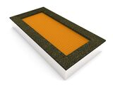 Die Dämpfungsoberfläche - ist aus speziellem recyceltem Gummi mit dem EPDM-Zusatz hergestellt. Die Dämpfungsoberfläche ist in einer Antirutsch-Ausführung und dient zur Dämpfung potenzieller Stürze