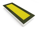 Die Springfläche - besteht aus einer Vielzahl der Lamellen, die zu diesem Zwecke bestimmt sind, sie sind mit Edelstahlseile. Die Endstücke der Seile sind mit dem Rahmen mit Hilfe von Federn verbunden. Die Lamellen sind aus speziellem Kunststoff hergestellt, der gegen Abrieb und Witterungseinflüsse beständig ist. Dank dieser Tatsache, können Kinder bei der Nutzung des Trampolins Schuhe anhaben. Die Springfläche ist ebenfalls in einer Antirutsch-Ausführung.