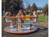 Karussell mit Sitzen KO180K (Durchmesser 1,8 m) - metall, Mit Antirutsch-Oberfläche, drehbarer Mitte und Sitze aus HDPE. Als Fallschutzfläche genügt eine Grasfläche. Mehr Informationen