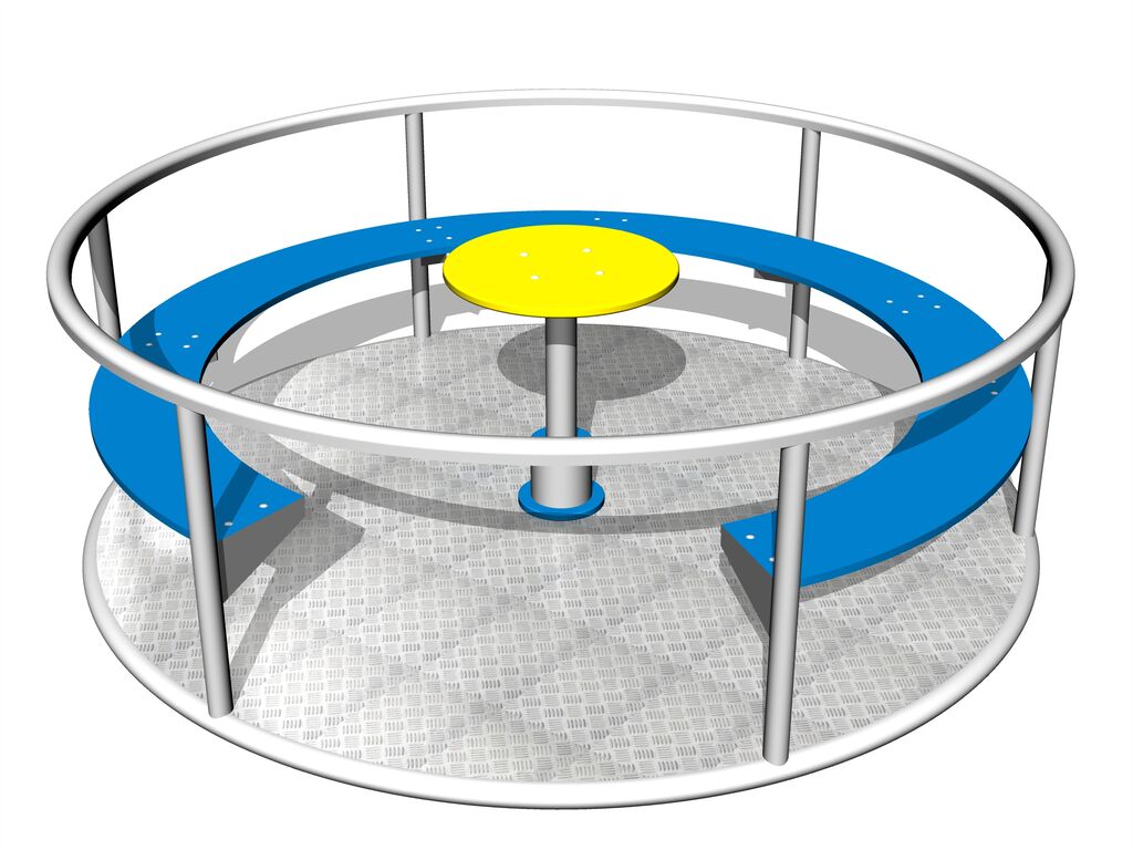 Karussell mit Sitzen KON0004K (Durchmesser 1,85 m) - metall, Mit Antirutsch-Oberfläche, drehbarer Mitte und Sitze aus HDPE. Als Fallschutzfläche genügt eine Grasfläche. Mehr Informationen