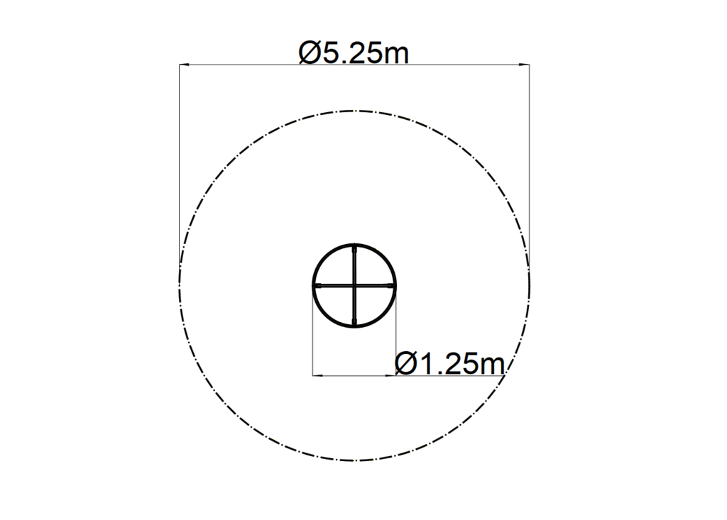 | Benötigte Raumfläche: | 5,25 x 5,25 m |