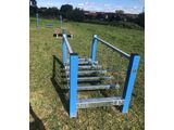 Ketten-Balanciersteg mit beweglichen Balken - metall, Länge 2,26 m, Als Fallschutzfläche genügt eine Grasfläche. Zur Auswahl stehen drei Farbvarianten der Konstruktion – Braun, Blau und Rot. Mehr Informationen