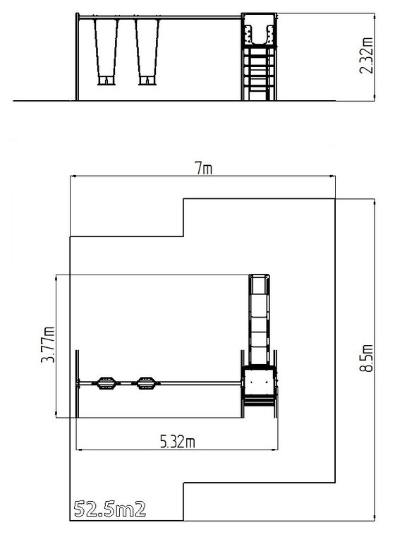 | Fallschutzfläche: | Gummi oder Kies 52,5 m2 |