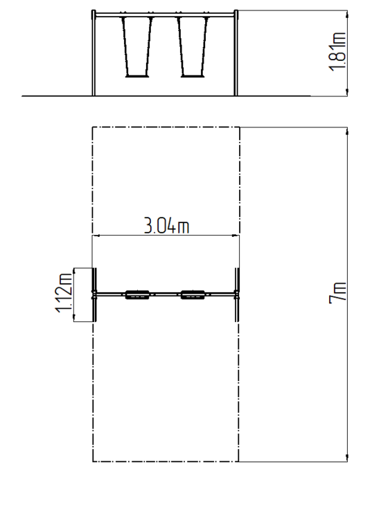 Die Tragkonstruktion der Schaukel besteht aus Konstruktionsstahl, die gegen Korrosion mit Zinkbeschichtung geschützt wird oder die Duplexbeschichtung mit Pulvereinbrennfarbe nach der RAL geschützt. Diese Tragkonstruktionen sind in die Betonfundamente verankert. Die gesamten Metallelemente sind auch verzinkt oder die Duplexbeschichtung mit Pulvereinbrennfarbe nach der RAL geschützt. Der normale Sitz besteht aus Aluminium und ist mit weichem und bequemem Gummi bezogen.