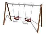 Die Tragkonstruktion der Schaukel besteht aus Konstruktionsstahl, die gegen Korrosion mit Zinkbeschichtung geschützt wird oder die Duplexbeschichtung mit Pulvereinbrennfarbe nach der RAL geschützt. Diese Tragkonstruktionen sind in die Betonfundamente verankert. Die gesamten Metallelemente sind auch verzinkt oder die Duplexbeschichtung mit Pulvereinbrennfarbe nach der RAL geschützt. Der Baby Sitz besteht aus Gummi und ist mit Aluminiumeinsatz verstärkt. Die Ketten sind aus Edelstahl, was eine sehr bedeutende Verlängerung ihrer Lebensdauer bewirkt. Sämtliche Verbindungselemente sind verzinkt oder aus Edelstahl.