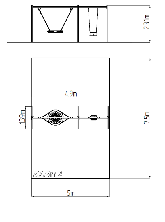 | Fallschutzfläche: | Gummi oder Kies 37,5 m2 |
