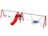 Ketten-Dreifachschaukel mit Rutsche with a slide RH6381K - metall, Fallhöhe 1 m, Als Fallschutzfläche genügt eine Grasfläche. Zur Auswahl stehen drei Farbvarianten der Konstruktion – Braun, Blau und Rot. Mehr Informationen