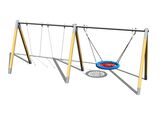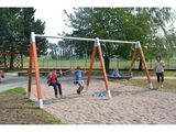 Die Schaukeln werden mit Hilfe von verzinkten Ketten am Stahlträger aufgehängt. Die Schaukel „Vogelnest” besteht aus Polypropylen-Seil. Die Tragseile bestehen aus HERKULESTAU (16 mm Seil aus Polypropylen mit Stahlkern). Sämtliche Verbindungselemente sind feuerverzinkt oder aus Edelstahl.