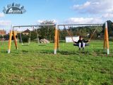 Die Tragkonstruktion der Schaukel besteht aus Leimbalken, dadurch wird eine Rissbildung im Holz vermieden. Die Oberflächenbehandlung besteht in Tiefenimprägnierung und 3-Schichten Lackbehandlung, die die Anforderungen der Norm EN 71/3 erfüllen (Sicherheit von Spielzeug). Diese Konstruktionen werden im Terrain durch feuerverzinkte Stahlpfostenträger verankert und anschließend im Beton befestigt. Somit wird der direkte Kontakt mit dem Boden vermieden.