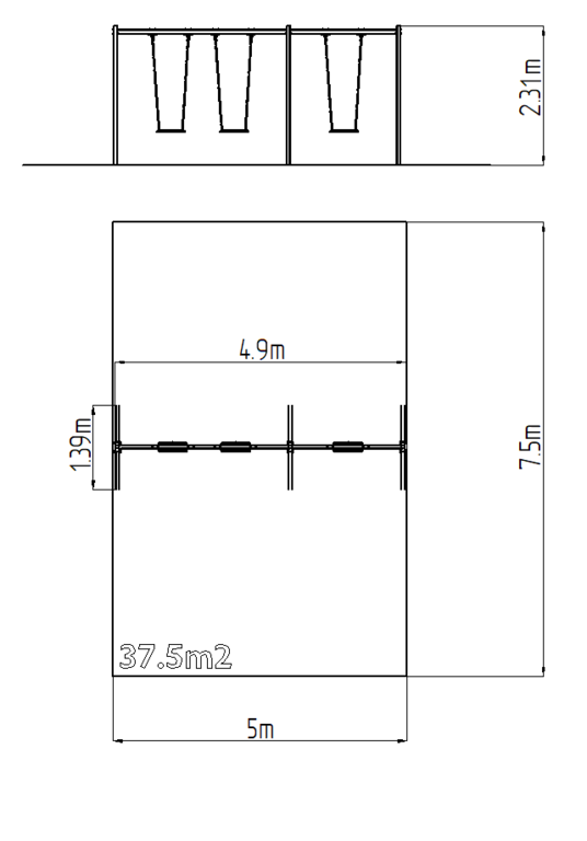 | Fallschutzfläche: | Gummi oder Kies 37,5 m2 |