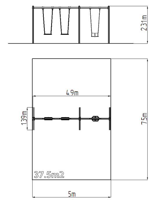 | Fallschutzfläche: | Gummi oder Kies 37,5 m2 |